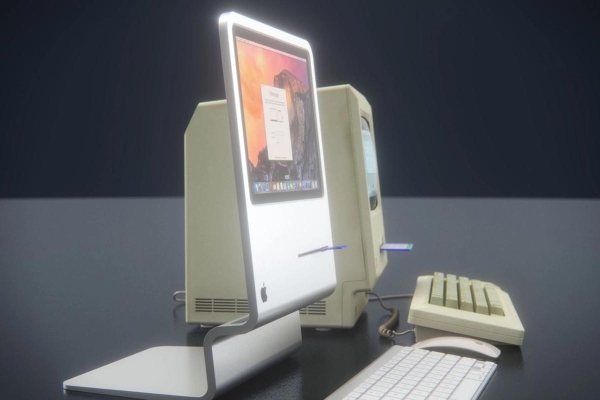 Когда в линейке iMac долгое время не появлялось свежих и новых решений, сторонние разработчики предложили интересный концепт в стилистике классических десктопных компьютеров. Передняя панель и изгибы корпуса модели отсылают к первым компьютерам Apple из 80-х годов.