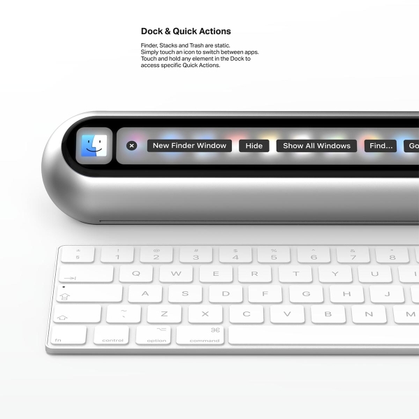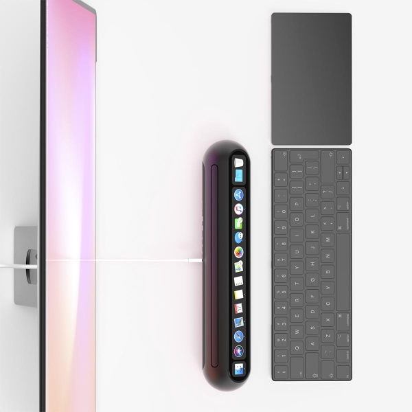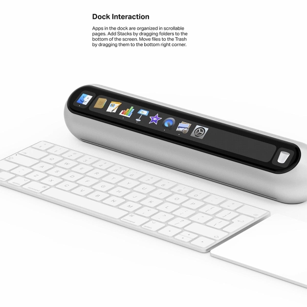 Он предложил выпустить миниатюрный компьютер в виде саундбара с сенсорной панелью управления. Touch Bar, по задумке дизайнера, мог бы дополнительно отображать Dock-панель операционной системы и освободить место на экране компьютера.