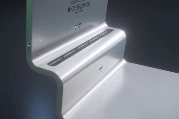 Идея получилась интересной, внешний вид сочетает в себе дизайн планшетов iPad и узнаваемую подставку в стиле профессионального монитора Apple.