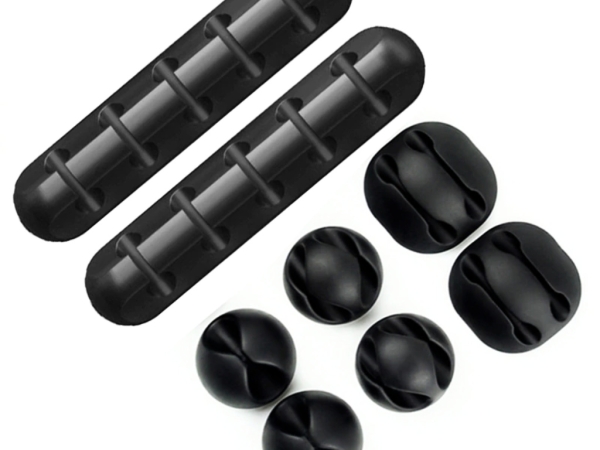 Органайзеры на любой вкус, которые приклеиваются на рабочий стол, чтобы с него не скатывались зарядные и другие кабели.