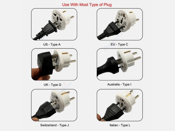 Переходник, который вставляется в европейскую розетку и даёт возможность использовать её с любыми блоками питания вне зависимости от страны происхождения.