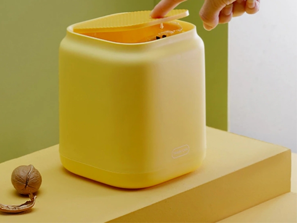 Стильная корзина для рабочего стола, в которую, к примеру, получится бросать скорлупу от орехов, если едите их на протяжении дня за компьютером.