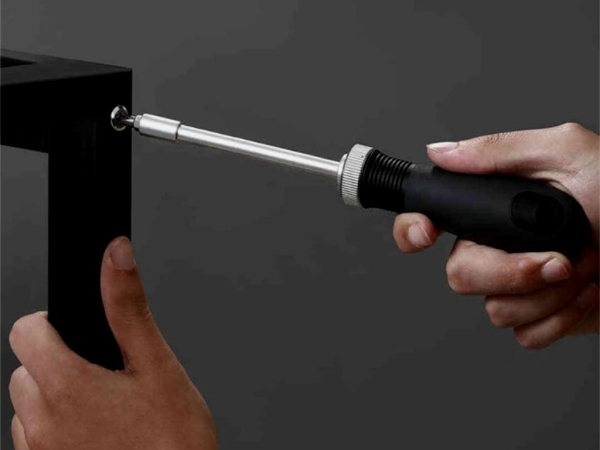 В стильном чёрном кейсе нашлось место для молотка, отвёртки с набором биток, пассатижей с кусачками, строительного ножа и не только.