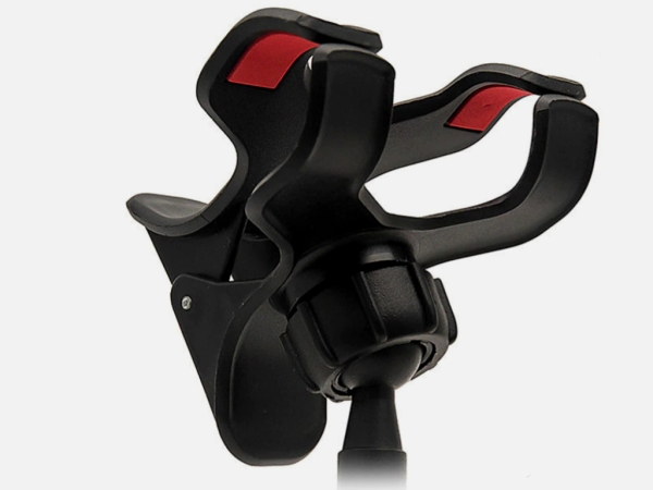 Он представляет собой прищепку для крепления на стол, а также гибкую ножку, позволяющую подобрать высоту и другие нюансы расположения мобильного устройства.