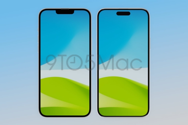 Даже базовые модели iPhone 15 (справа) получат более тонкие рамки вокруг экрана — это хорошо видно при сравнении с iPhone 14 (слева)