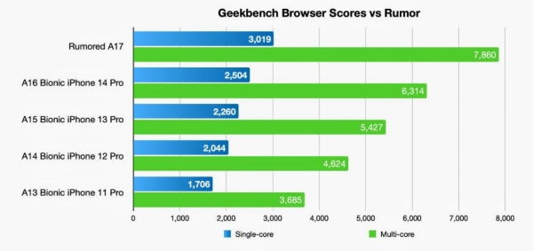 Обычно Apple увеличивает производительность новых чипов примерно на 10%, поэтому такой скачок выглядит необычно.