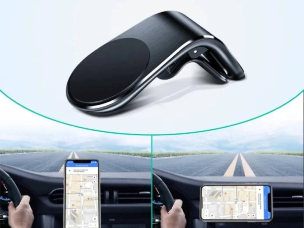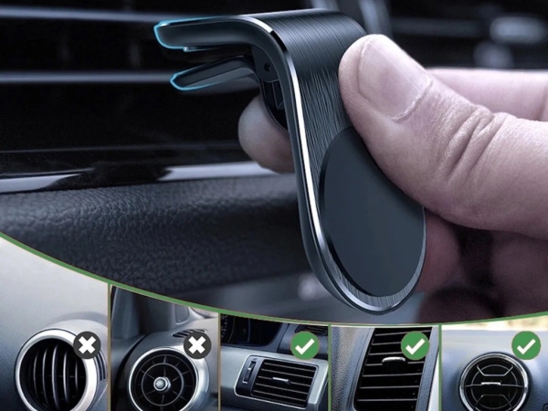 Удобный автомобильный держатель для смартфона с магнитным механизмом, который устанавливается в дефлектор обдува.