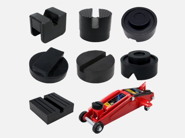 Накладки на площадку домкрата разных форм и размеров из твёрдой резины.