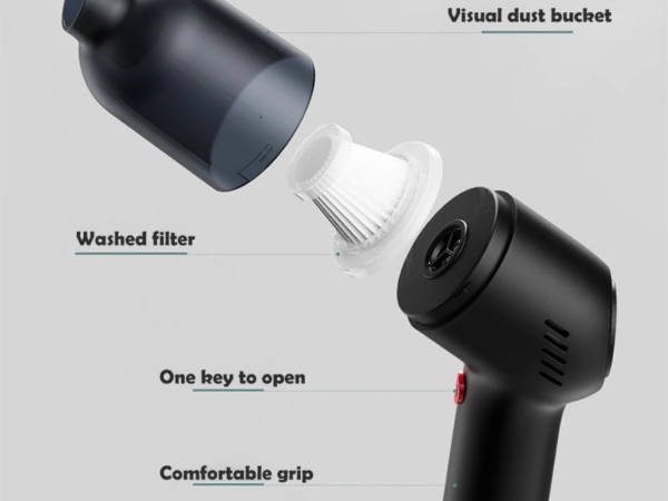 Популярный автомобильный пылесос в формате пистолета с высокой мощностью и компактной конструкцией.