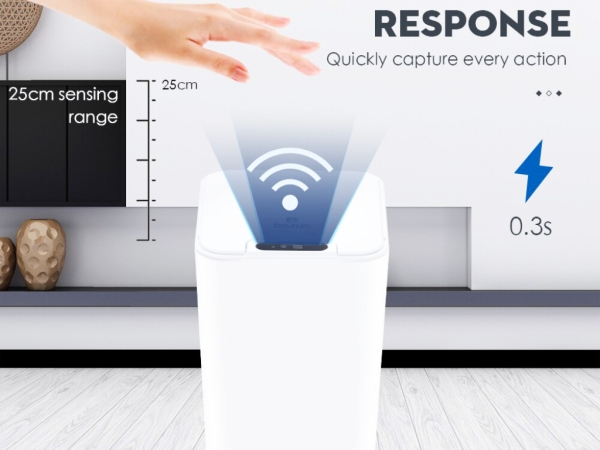 Мусорное ведро, которое автоматически открывается, если провести руку над специальным сенсором, а также закрывается в течение 5 секунд.