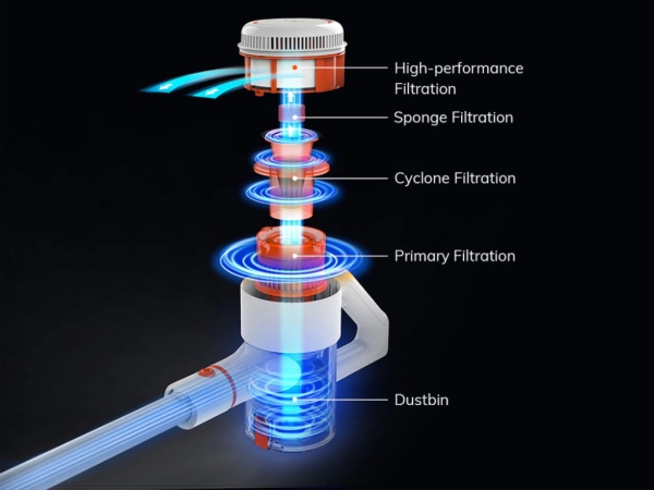 Пылесос оборудован эффективным фильтром, который тормозит пыль и другие объекты, так и норовящие попасть в воздух.