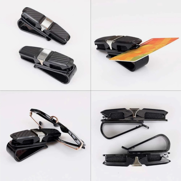 Прищепка, которая цепляется к солнцезащитному козырьку. После этого на неё можно закрепить очки, карточки, записки и так далее.