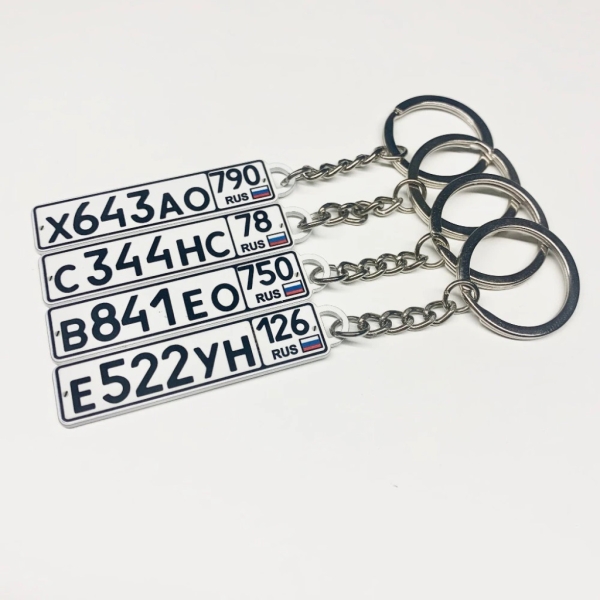 Брелоки с номерными знаками, на которых может быть напечатан индивидуальный. Выглядят забавно, можно купить в подарок.