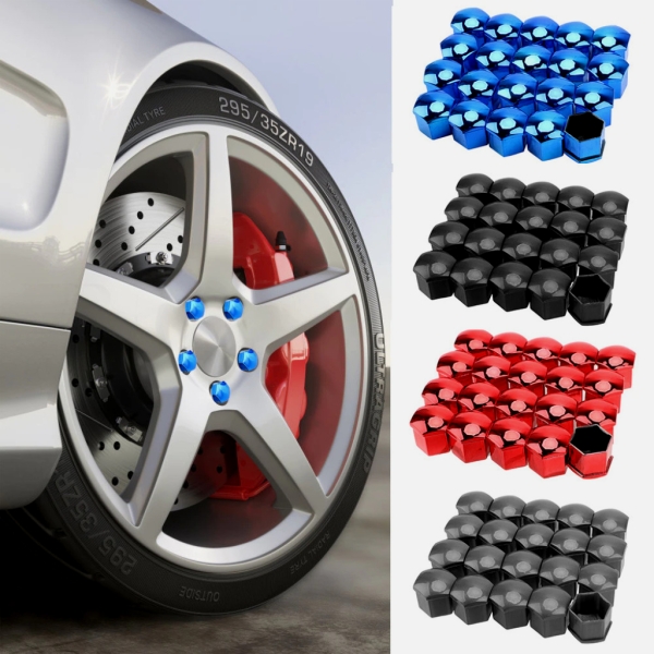 Набор защитных колпачков для болтов на дисках автомобиля. 20 штук, по 5 для каждого. Все они выполнены из пластика и окрашены в разные цвета.