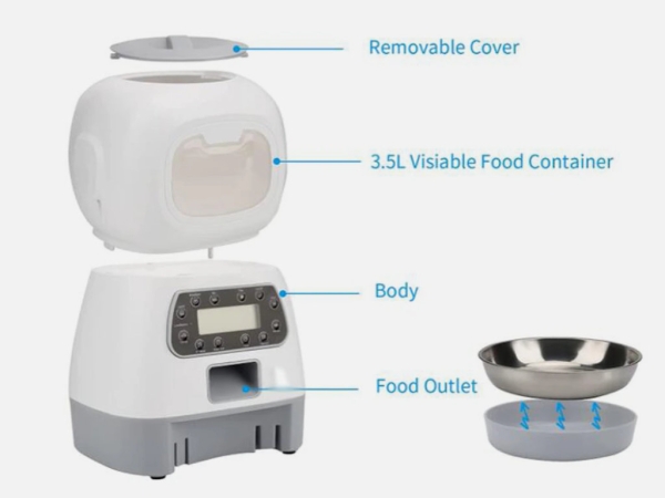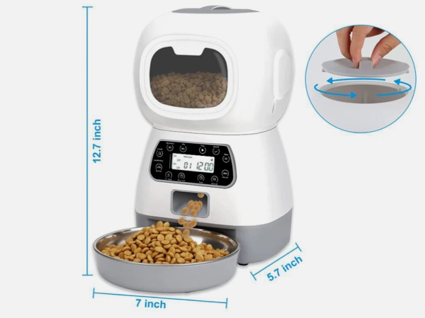 Автоматический дозатор для корма, который идеально подходит для животных, которые часто остаются дома одни.