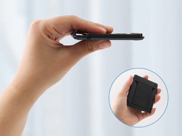 Максимально компактная универсальная подставка для смартфона или планшета, которая удобно складывается и раскладывается, а также предлагает несколько углов наклона.