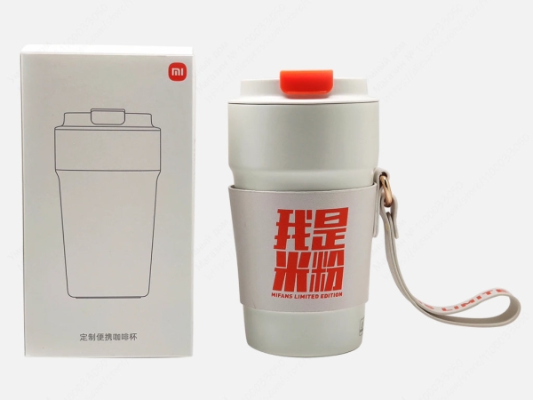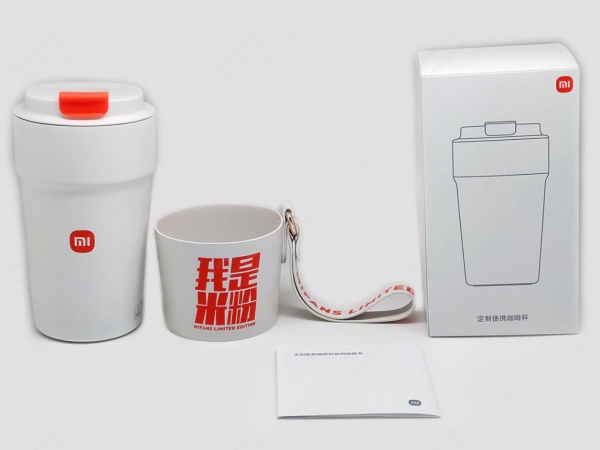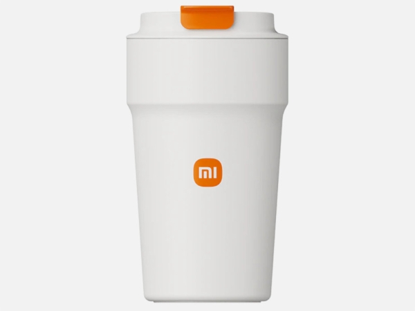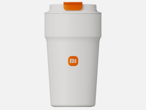 Компактная термочашка в фирменных цветах Xiaomi. Выглядит очень компактно, надёжно закрывается, есть накладка, защищающая от высокой температуры.