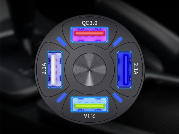 Адаптер комплектуется 4 портами USB-A, которые отличаются по мощности. Один из них, к примеру, поддерживает Quick Charge одной из актуальных версий.
