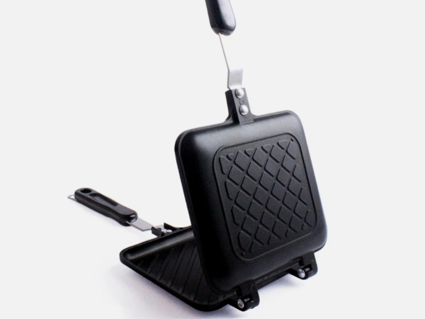 Небольшая сковородка-гриль для сэндвичей и не только. Состоит из двух частей, которые закрывают находящееся внутри с обеих сторон.