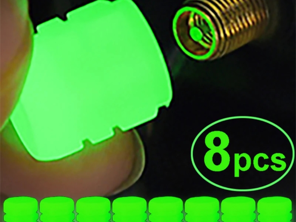 Комплект из до 8 флуоресцентных колпачков для клапанов на автомобильных шинах.