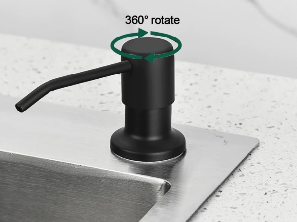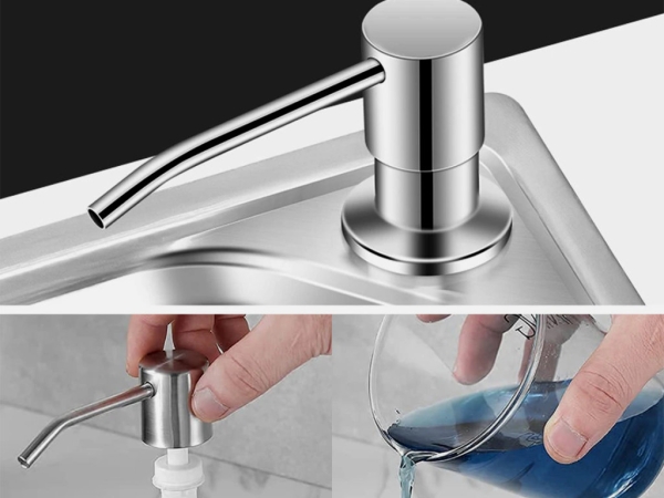 Диспенсер для жидкого моющего средства для посуды, который встраивается под раковину. Соответственно, она должна быть такой, чтобы в ней можно было сделать отверстие.