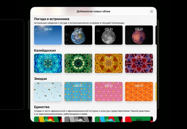 3. Появились новые предустановленные темы для экрана блокировки: раздел статических обоев “калейдоскоп” и динамические “погода и астрономия” со всеми планетами солнечной системы.