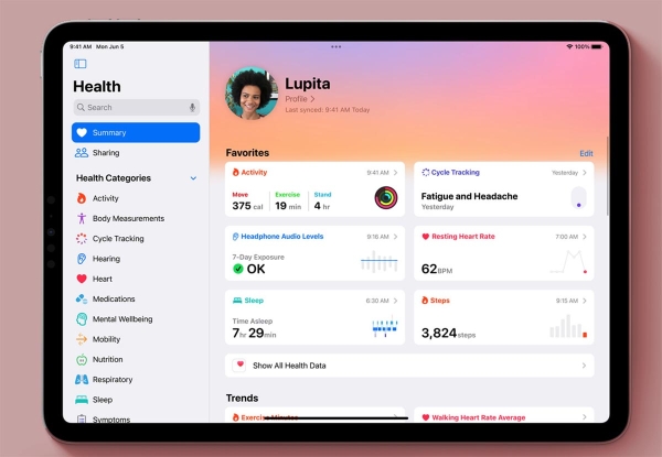 14. В iPadOS появилось приложение Здоровье. Это абсолютно новая утилита, которая разрабатывалась специально с учетом размеров экрана и соотношения сторон iPad.