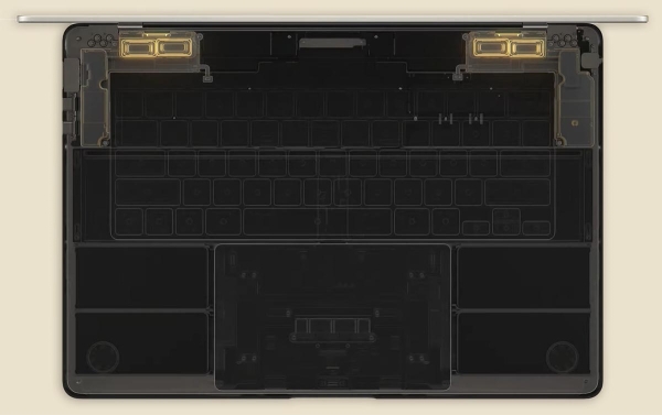 Купертиновцы не стали жадничать и оснастили новинку улучшенной, по сравнению с 13-дюймовой моделью, аудиосистемой. 6 динамиков с низкочастотными излучателями выдают очень приличный звук и лишь немного недотягивают до линейки MacBook Pro.