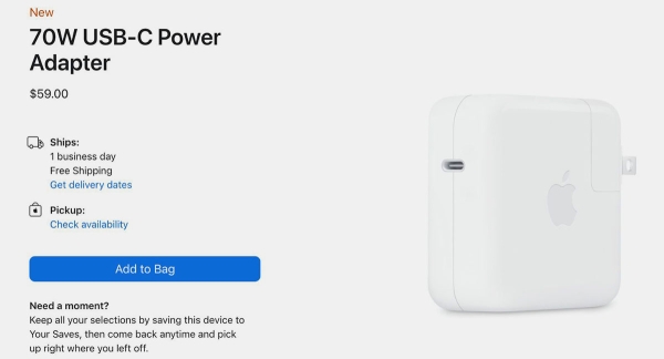 Более мощный адаптер питания, для быстрой зарядки MacBook, можно выбрать вместо двухпортового бесплатно