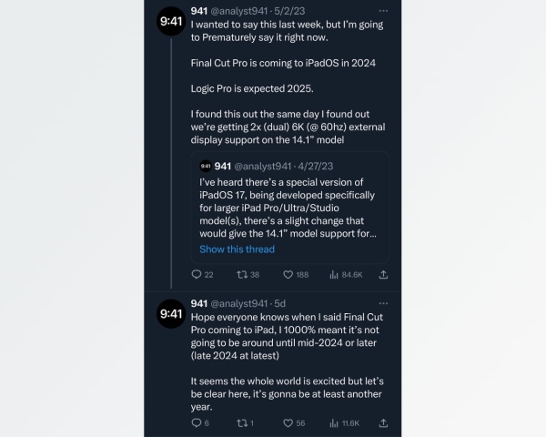 Сестра analyst941 работала в Apple и попала в команду, которая разрабатывала Final Cut Pro и Logic Pro для iPad. В какой-то момент Apple сообщила сотрудникам дату выхода приложений на iPad, но всем назвала разные даты.