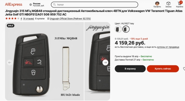 На AliExpress продаются болванки различных электронных ключей для старых и новых авто. Стоят они от 2 до 10 тысяч рублей в зависимости от автомобиля. Но, как правило, чем новее машина, тем дороже ключ.