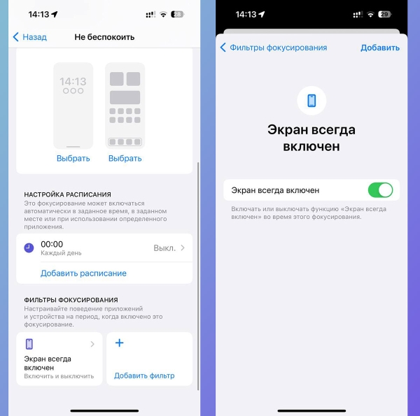 Можно не привязывать работу подсветки к режимам фокусирования и задать для нее собственную логику. Такая возможность появилась после выхода обновления iOS 16.4.
