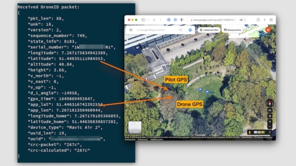 Расшифровав его, исследователи обнаружили, что DroneID каждого дрона передает не только его собственные координаты, но и местоположение оператора на земле.