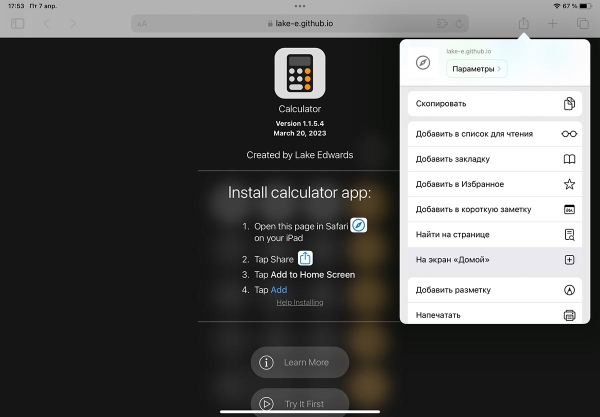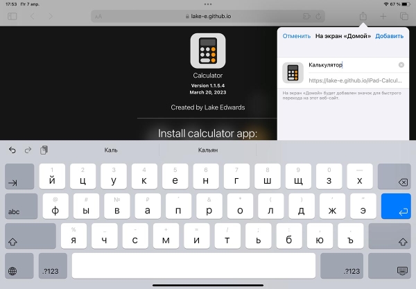 После этого на домашнем экране планшета появится новое приложение-калькулятор. Его можно использовать в полноэкранном режиме, но гораздо удобнее применить опции многозадачности iPadOS.