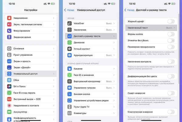 ▶ Перейдите в раздел Настройки — Универсальный доступ — Дисплей и размер текста.