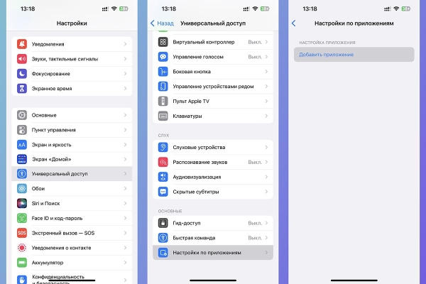 ▶ Перейдите в раздел Настройки — Универсальный доступ — Настройки по приложениям.