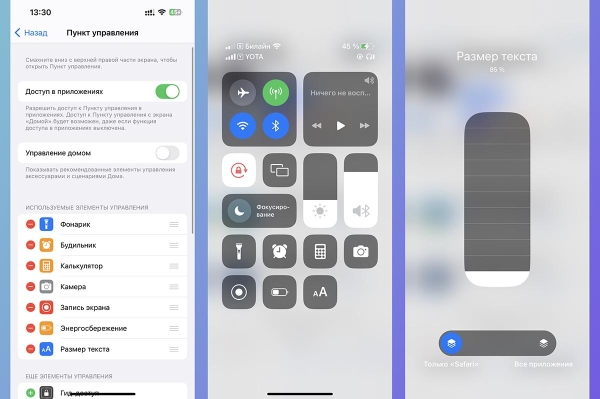 ▶ Нажмите кнопку аА и сможете изменить размер текста как для всей системы, так и для запущенного в данный момент приложения.