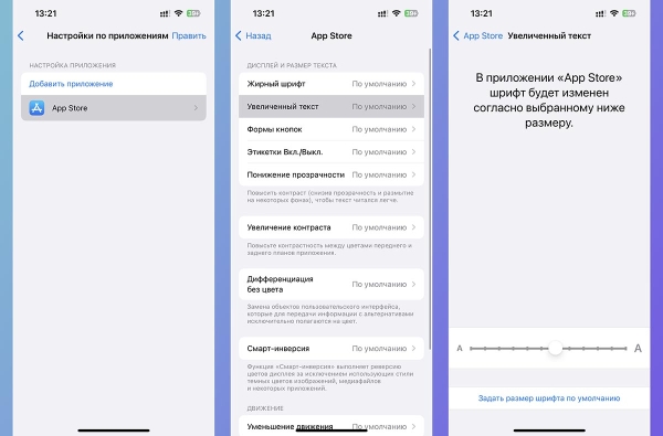Как настроить размер текста для выбранных приложений