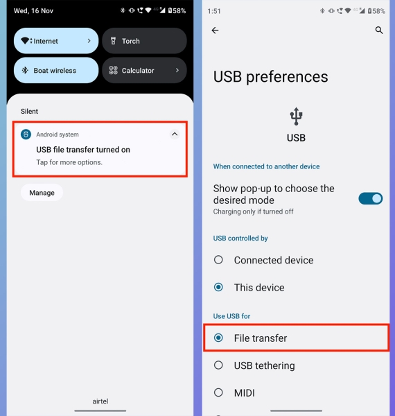 Работает все, как и в случае с Android File Transfer, только при соединении гаджетов по проводу.