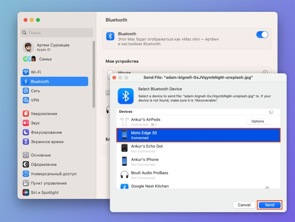 ► В macOS перейдите в Системные настройки – Bluetooth и дождитесь появления смартфона в списке обнаруженных устройств.