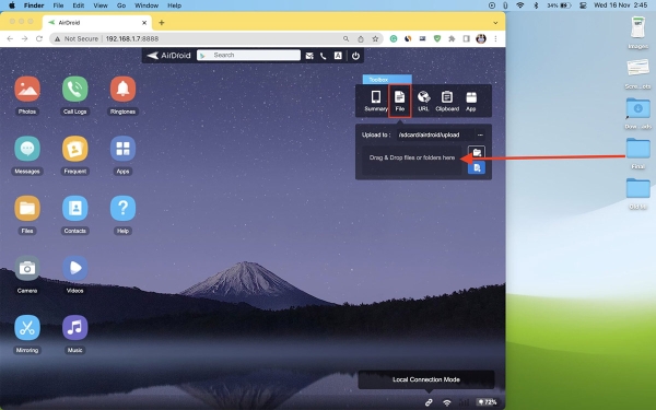 ► Перетаскивайте нужный файл прямо в браузер на компьютере, чтобы он отправился на Android-гаджет.