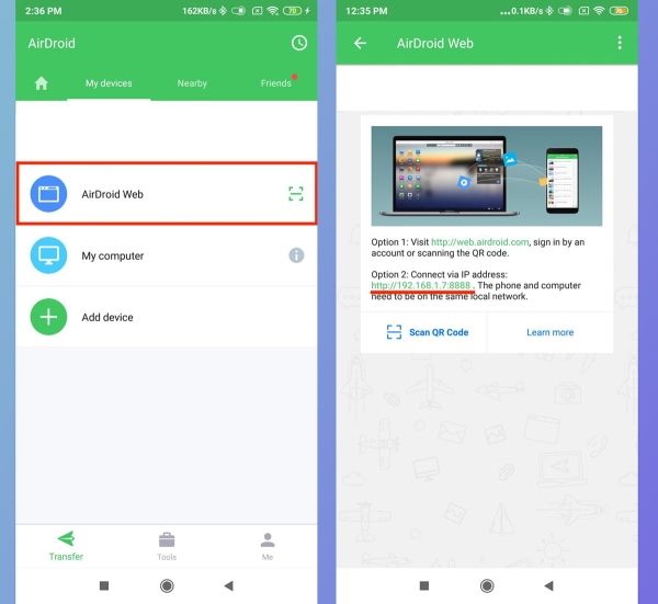 ► Запустите программу и перейдите в раздел AirDroid Web.