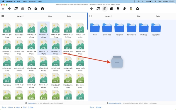 Теперь вы сможете переносить данные в любом направлении как через обычный файловый менеджер. Если перенос данных недоступен, активируйте экран Android-смартфона, чтобы он вышел из спящего режима.