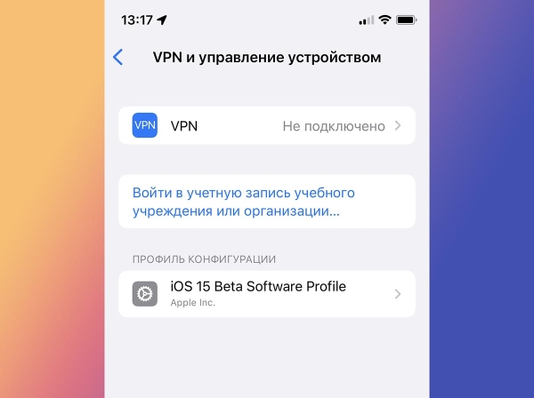 ► Удалите имеющийся профиль для установки бета-версий iOS 15 для разработчиков или публичных бета-версий системы.