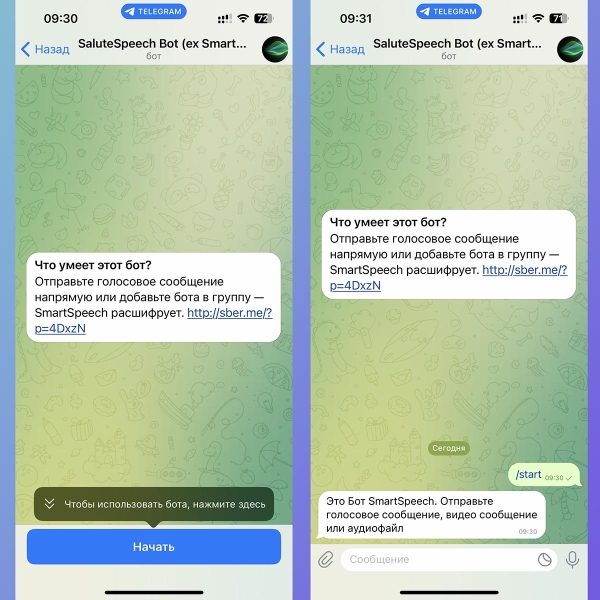 Для тех, кто не хочет оплачивать подписку Telegram, есть несколько сторонних решений для реализации этой фишки. Один из самых продвинутых вариантов на данный момент это чат-бот от команды SberDevices. Он отлично понимает пользователей даже в сложных условиях, например, с уличным шумом или ветром.