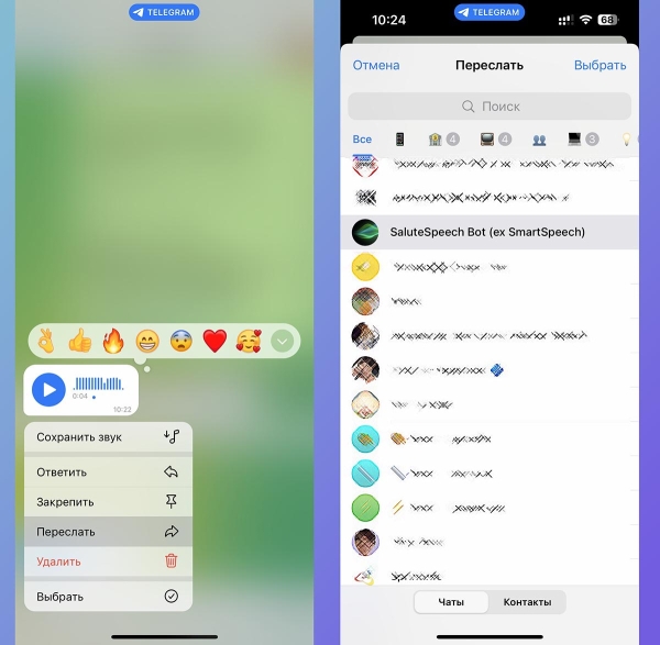 4. Перешлите аудиосообщение в чат с только что добавленным ботом.