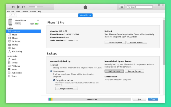 Через несколько минут на Windows-ПК будет создана полная копия данных iPhone.