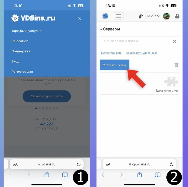 2. В личном кабинете нажмите кнопку Создать сервер.