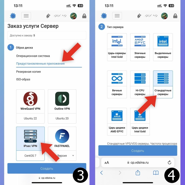 3. При выборе операционной системы укажите Предустановленные приложения – IPsec VPN.