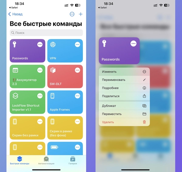 Чтобы добавить несколько ярлыков, дублируйте скрипт в приложении Команды и вносите изменения в дубликат.